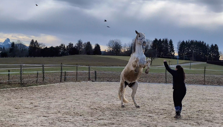 Jument très sensible qui a beaucoup de mal à faire confiance, se décontracter et se laisser aller !