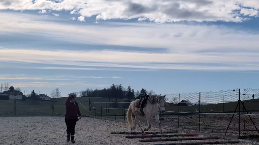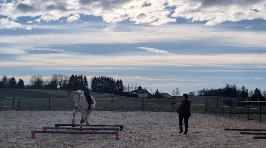 Aujourd'hui séance en carrière sur barres au sol et cavalettis !