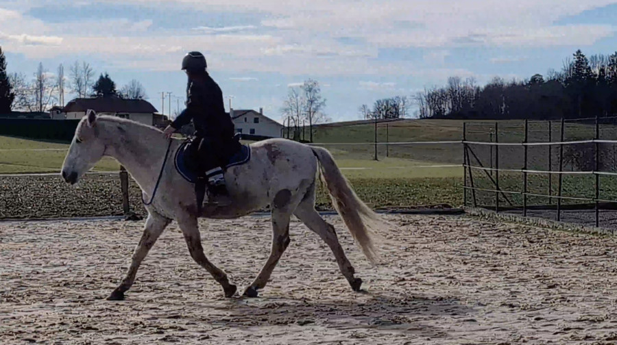 Je suis donc repassée au pas puis au trot sur des séquences de directions et transitions sans toucher à la cordelette pour le re connecter, ça a plutôt bien fonctionné ! On a ensuite pu re bosser un peu le galop avec des transitons, nettement mieux!