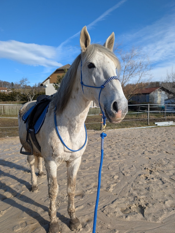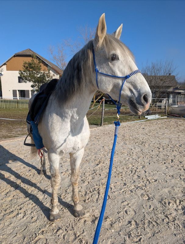Il est en pension chez sa propriétaire qui est en train de construire une petite écurie de proprio ! Pour le moment pas de carrière sur place mais plusieurs solutions pour monter :