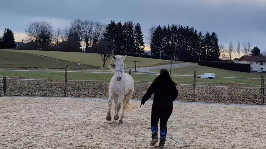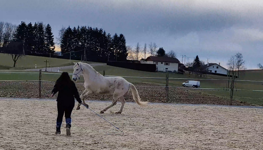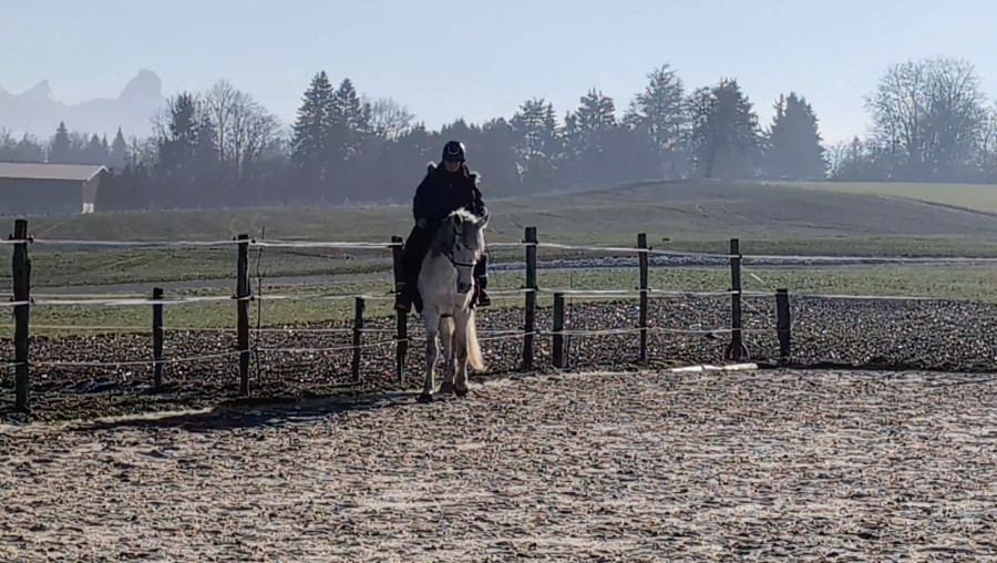 On a fait du mener au pas et au trot, et même un peu au galop , des cercles et cercles en autonomie au trop et galop, des valses où on essaye de mettre un peu d'expressivités ça commence à venir, des rappels, j'en ai même eu un complet au galop pour la 1ère fois Et on a tenté les roll back sans passer par le reculer, direct depuis le pas, pour la 1ère fois eh ben il a plutôt bien fait