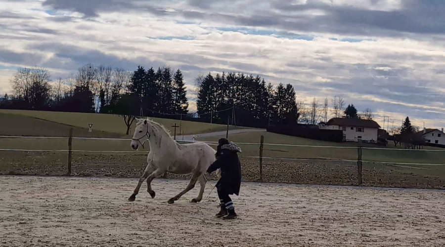 On a bossé les cercles et rappels au trot puis au galop, il m'en a fait un superbe au galop à gauche en gardant le galop jusqu'à moi puis j'ai voulu tenter la même à droite mais j'ai du mettre trop de pression donc il m'a dit un gros m*rde à partir à fond coup de cul oups pardon Zouzou ^^ mais revenu super vite vers moi, les déconexions durent vraiment très peu de temps maintenant ! On a refait en mettant moins de pression, bon il est repassé au trot mais pas grave !