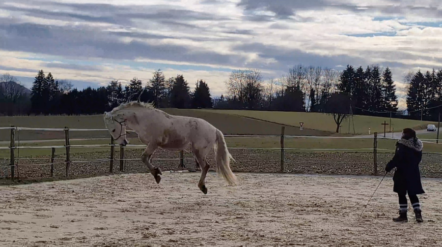 Jument très sensible qui a beaucoup de mal à faire confiance, se décontracter et se laisser aller !
