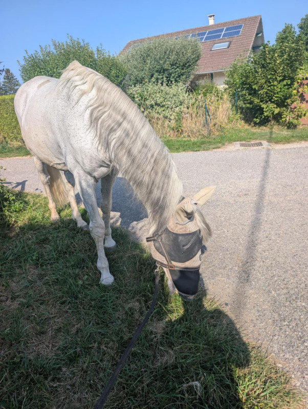 Il est en pension chez sa propriétaire qui est en train de construire une petite écurie de proprio ! Pour le moment pas de carrière sur place mais plusieurs solutions pour monter :