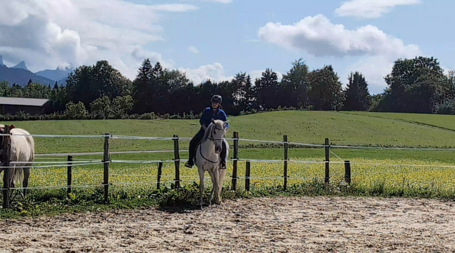 Séance de 35 minutes uniquement au pas, en side ! (bon et il a été bien embêté par les mouches surtout que j'avais pas mis le masque car début de séance il faisait nuageux et peu de mouches puis ça s'est levé ...)