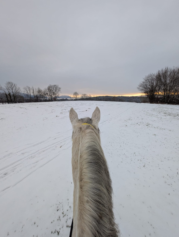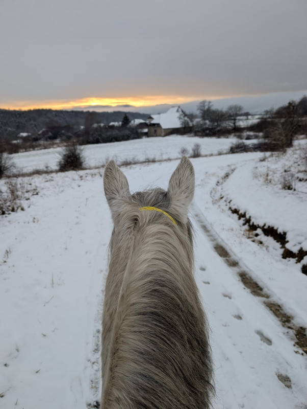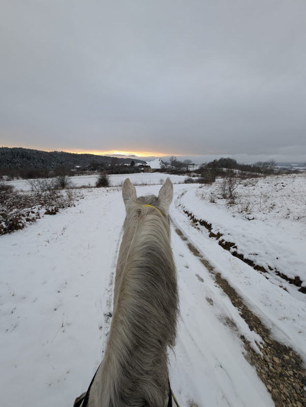 2015 je pars du club et je prends une DP sur une grande ponette pour CSO. Après notre premier concours, jument boiteuse, verdict arthrose, elle ne pourra plus jamais sauter. Bon, des mois de réeducation, je retrouve les plaisirs de monter à cheval juste pour le plaisir, pas pour la compet, et surtout loin des barres.