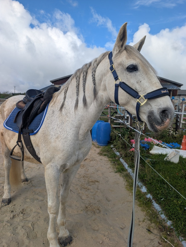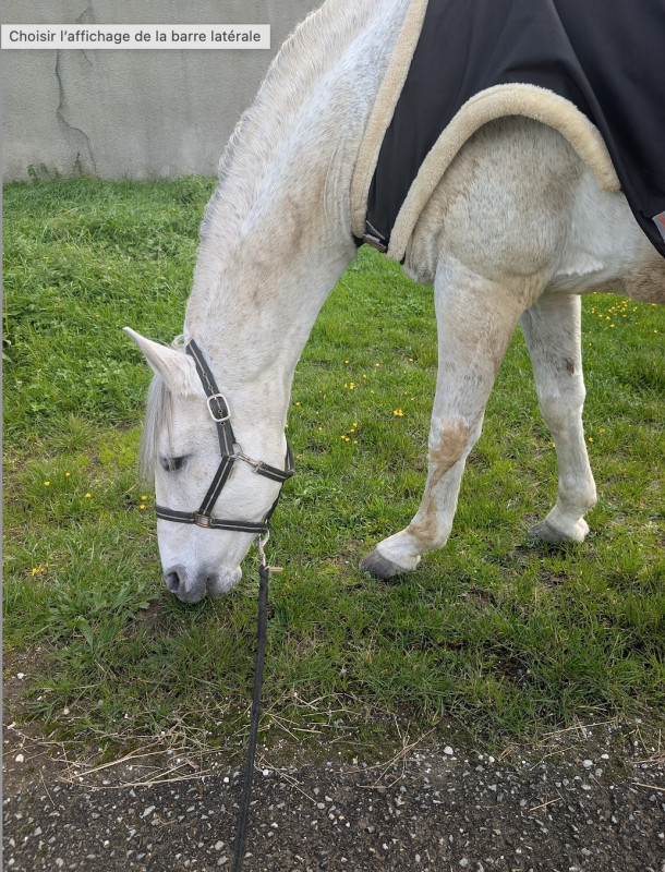 Il est en pension chez sa propriétaire qui est en train de construire une petite écurie de proprio ! Pour le moment pas de carrière sur place mais plusieurs solutions pour monter :