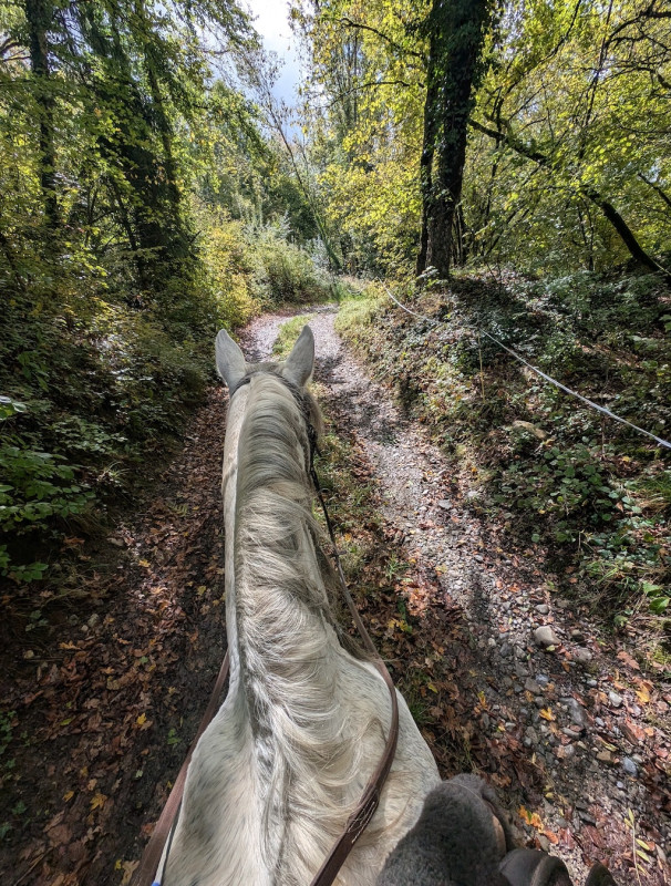 2015 je pars du club et je prends une DP sur une grande ponette pour CSO. Après notre premier concours, jument boiteuse, verdict arthrose, elle ne pourra plus jamais sauter. Bon, des mois de réeducation, je retrouve les plaisirs de monter à cheval juste pour le plaisir, pas pour la compet, et surtout loin des barres.