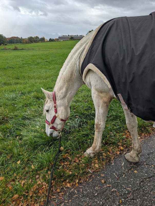 En attendant l'arrivée d'Anne So, j'ai tenté d'aller faire marcher Zouzou et brouter un peu ... Échec on s'est pris le déluge au bout de 8 minutes