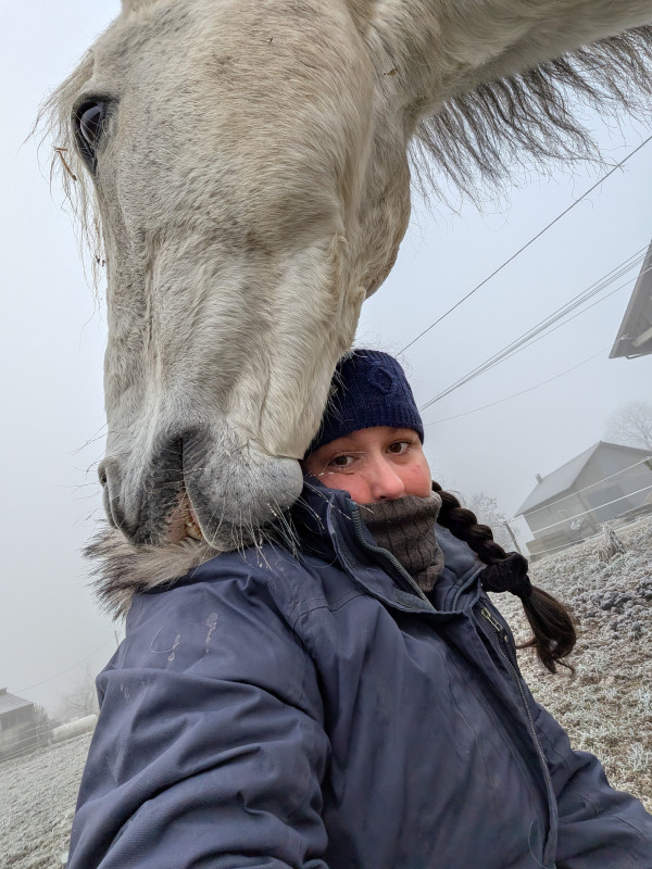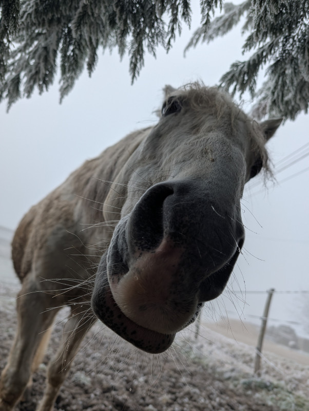 A la base je voulais faire que du pas mais le poney était chaud patate ... On a donc trotté et galopé un peu mais pas évident car c'était bien gelé... Lui il voulait galoper sur le verglas comme souvent ce grand malade