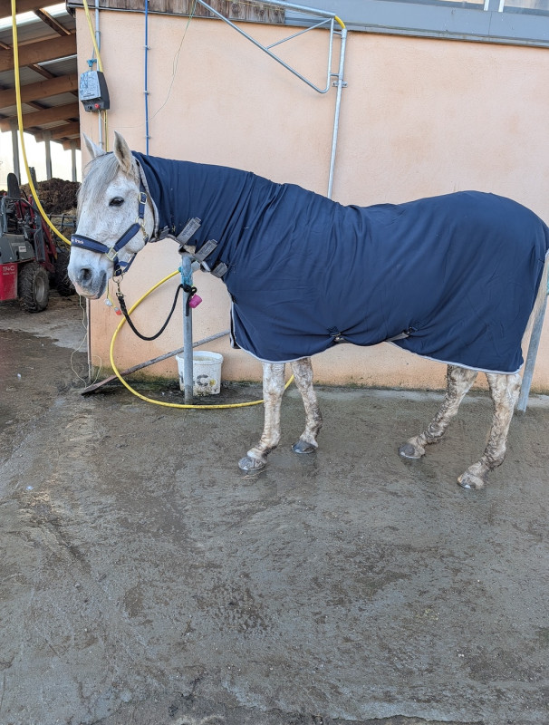 Retour aux écuries j'ai mis la séchante car avec son poil d'ours et les 8-9 degrés il a eu bien chaud et douche des membres puis bisous câlins