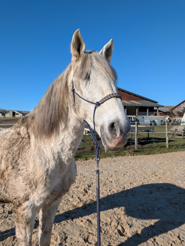 2015 je pars du club et je prends une DP sur une grande ponette pour CSO. Après notre premier concours, jument boiteuse, verdict arthrose, elle ne pourra plus jamais sauter. Bon, des mois de réeducation, je retrouve les plaisirs de monter à cheval juste pour le plaisir, pas pour la compet, et surtout loin des barres.