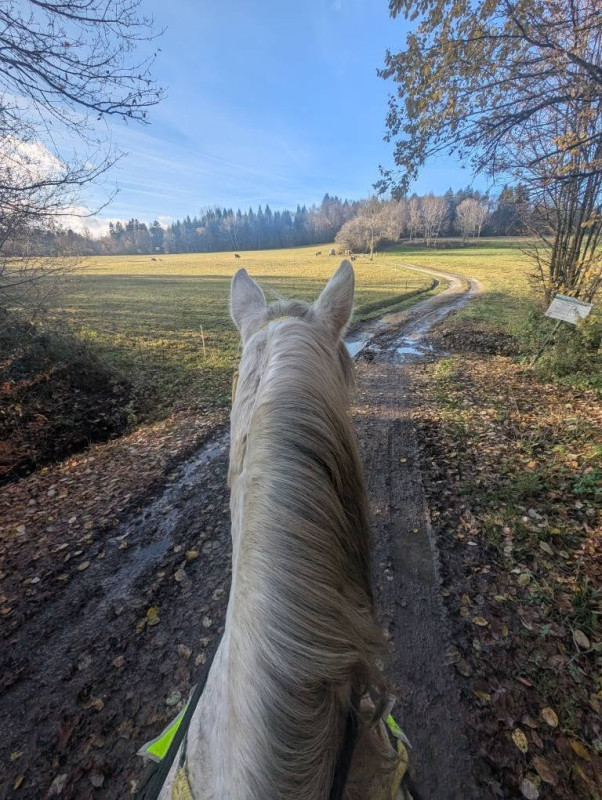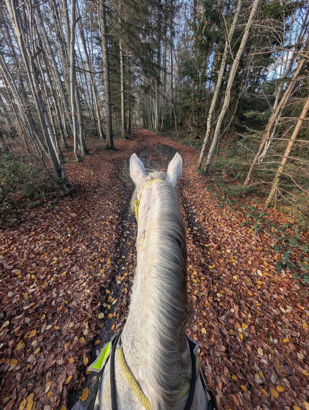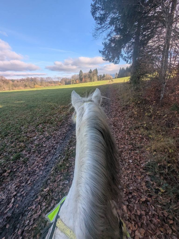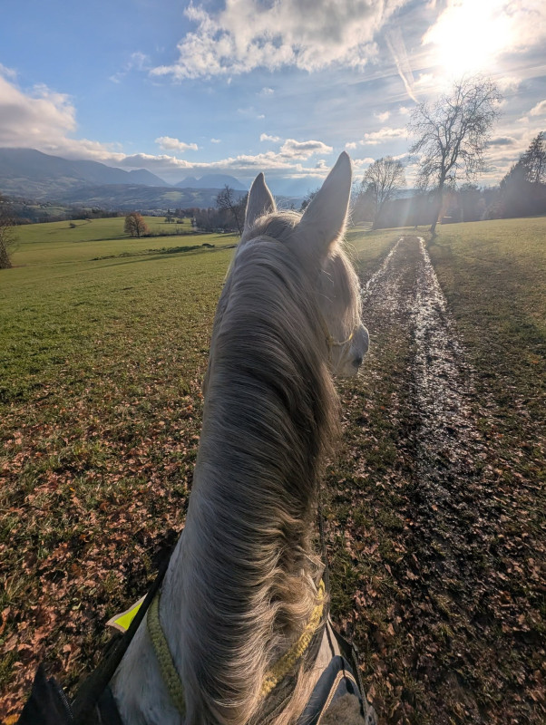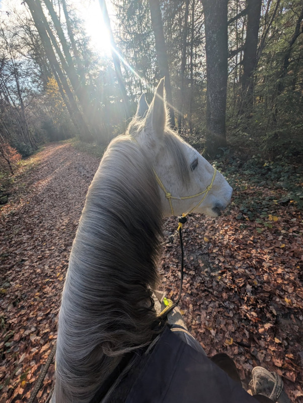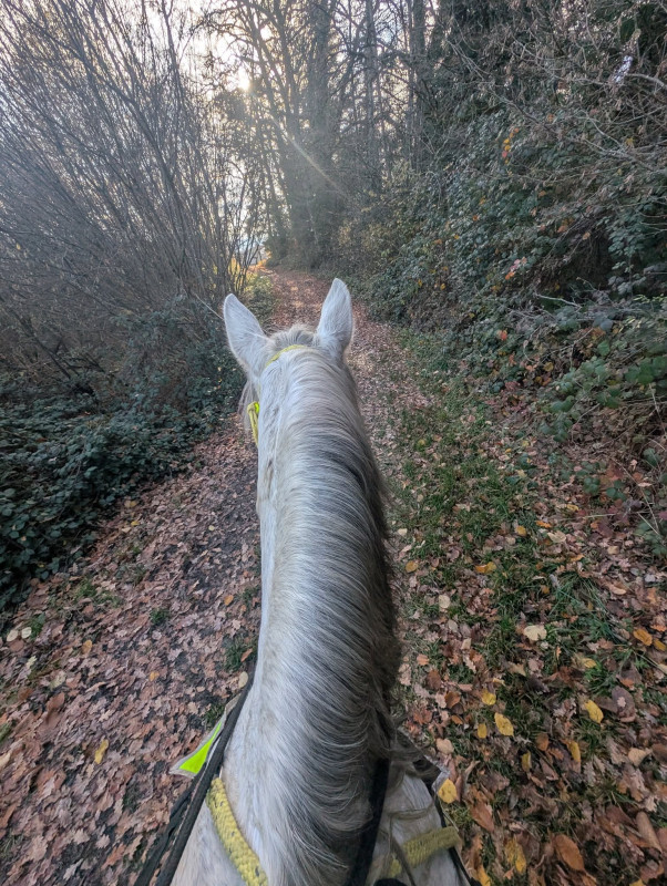 Du coup reste de la balade on a fait du pas et pas mal de trot ça nous a bien réchauffés ! Le tout en extension pour bosser ce petit dos ! Il a été top ! Bon a des moments il prenait le galop au lieu du trot mais à des moments il m'a sorti un trot de fou