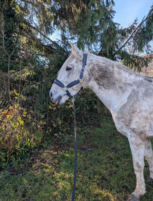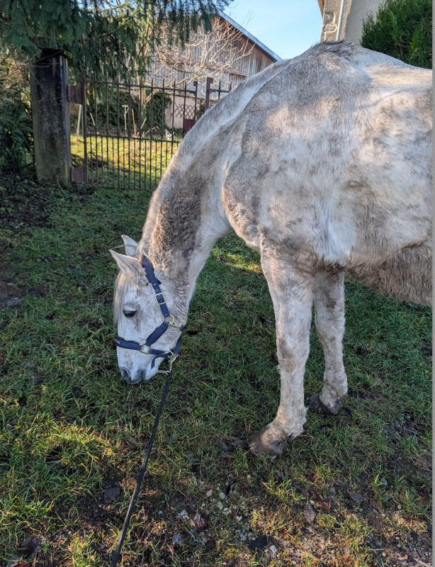 2015 je pars du club et je prends une DP sur une grande ponette pour CSO. Après notre premier concours, jument boiteuse, verdict arthrose, elle ne pourra plus jamais sauter. Bon, des mois de réeducation, je retrouve les plaisirs de monter à cheval juste pour le plaisir, pas pour la compet, et surtout loin des barres.