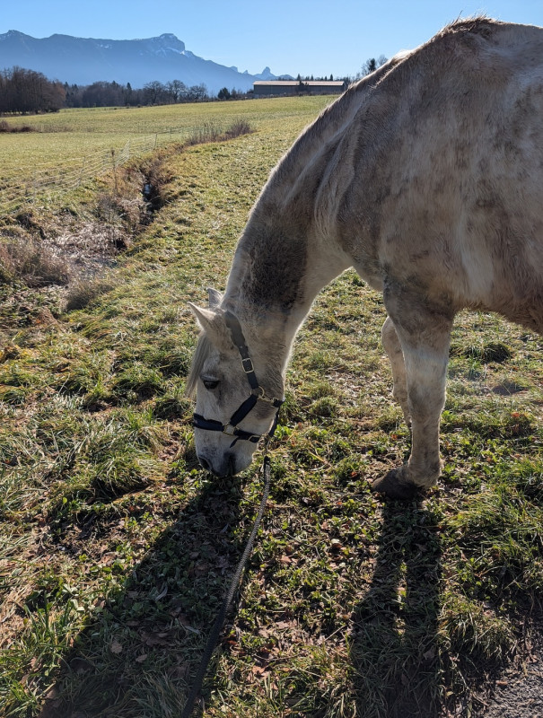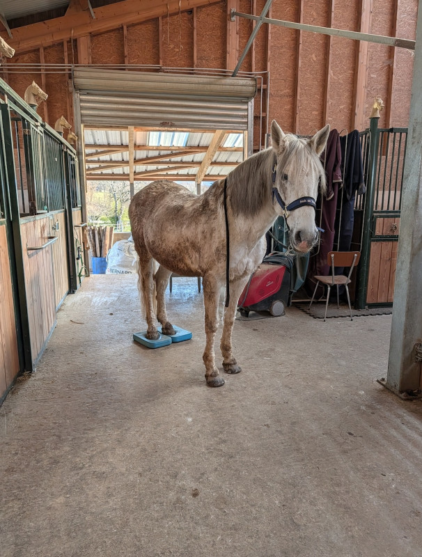 Il est en pension chez sa propriétaire qui est en train de construire une petite écurie de proprio ! Pour le moment pas de carrière sur place mais plusieurs solutions pour monter :
