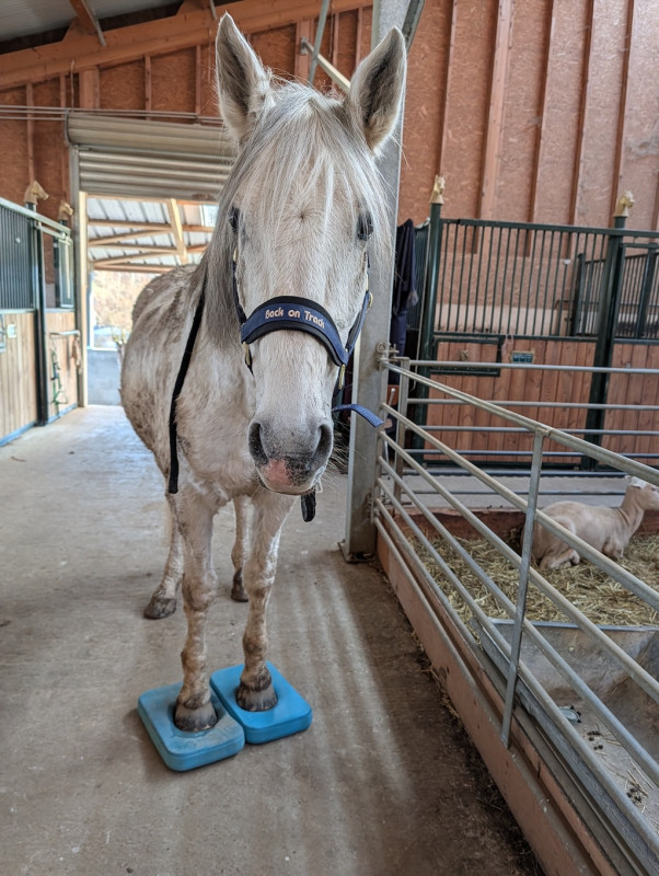 Puis retour aux écuries travail sur les pads, maintenant par 2 c'est devenu une formalité, même sur les antérieurs il bouge plus du tout et reste tranquillement dessus même si je m'éloigne