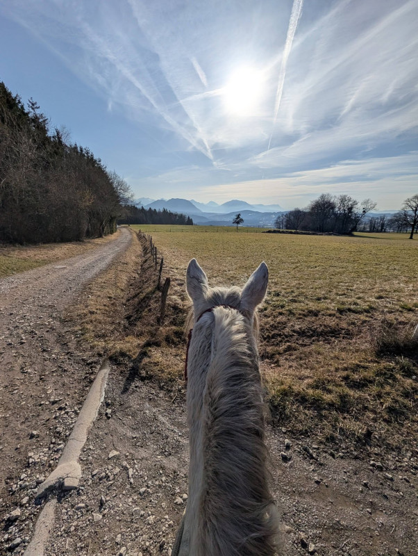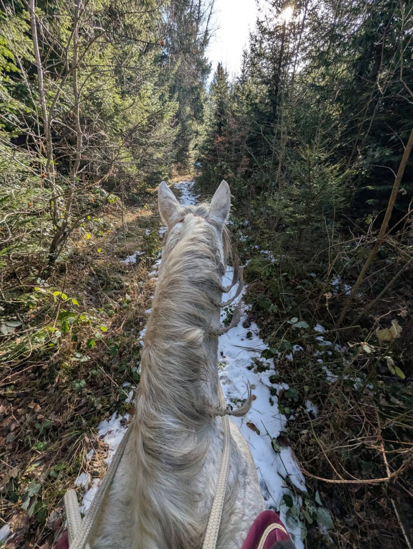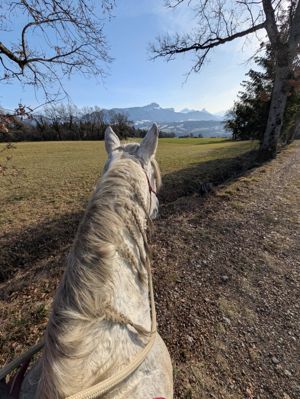 On a fait quasiment que du pas sauf le grand chemin de la remontée du bois qu'on a fait au galop ! Enfin entrecoupé car y'avait un piéton et un peu plus loin du verglas !