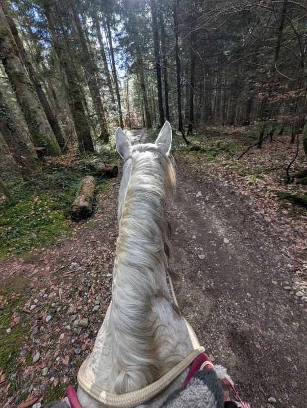Et là on arrive dans la grande montée dans laquelle on galope toujours et là... Blindé de monde ! Des groupes de personnes tous les 50m ... Bon on a eu le Zouzou show de la frustration de pas pouvoir galoper galop sur place, crabe etc en vrai il a été mignon car du coup je le faisais galoper tout doucement entre chaque groupe de personnes et repasser au pas à chaque fois et franchement il a géré une fois toutes les personnes passées il nous restait un peu de distance du coup allez go mon chat fait toi plaisir à fond