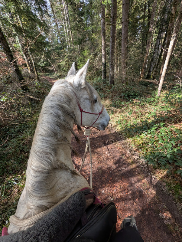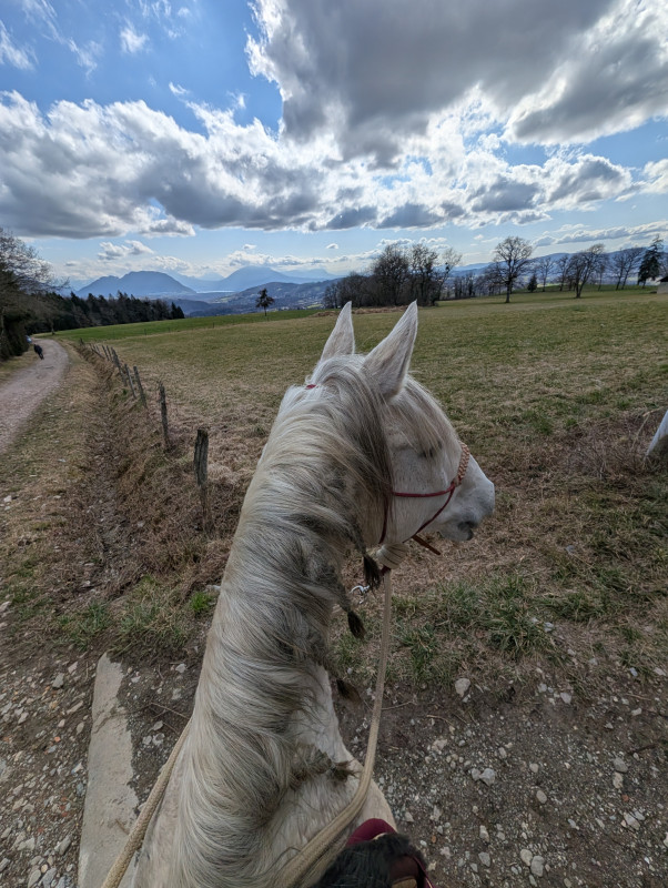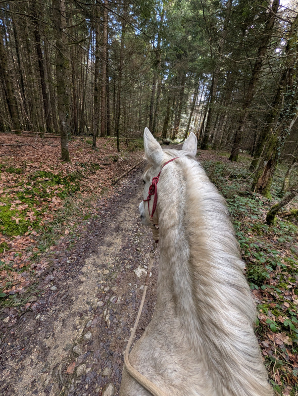 Après je pense que ça viendra car les 2 dernières séances (une fois en manège et une fois en balade) il a été sage malgré la présence de l'autre loulou !