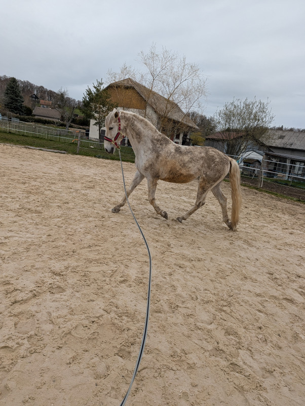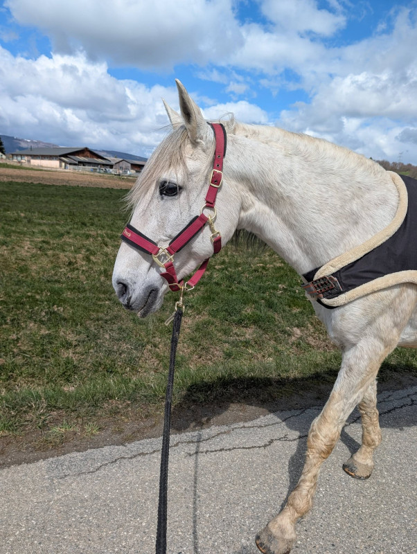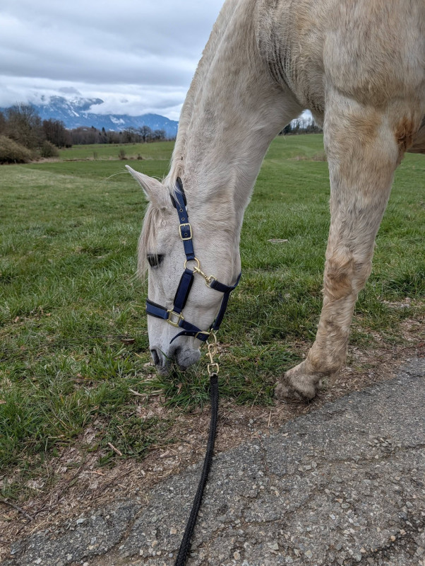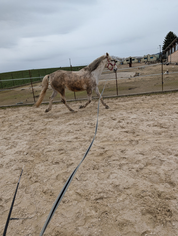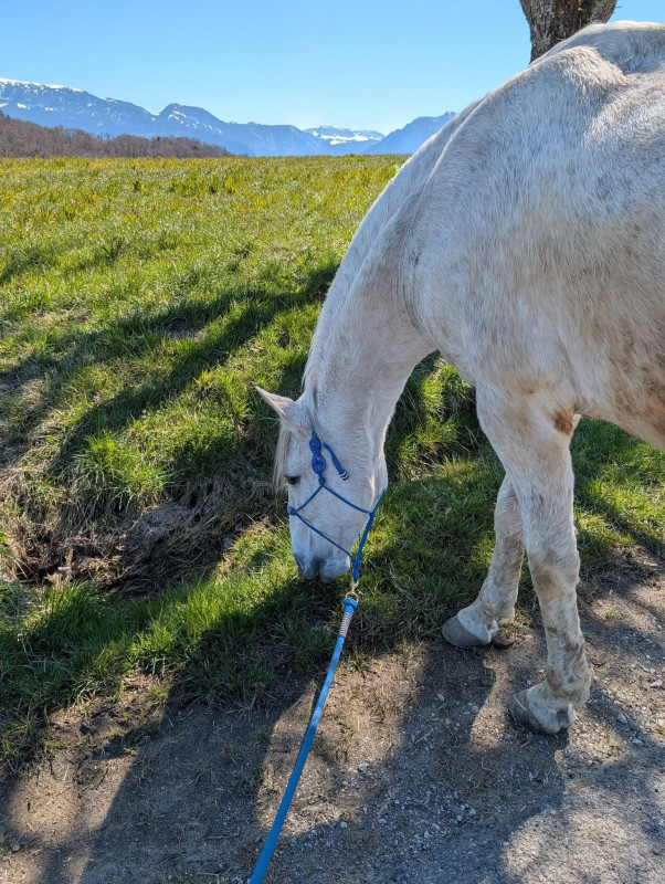 Au retour petite longe d'une dizaine de minutes histoire de le bouger un peu car il fait pas grand chose en ce moment poney très mignon et qui se déplace bien