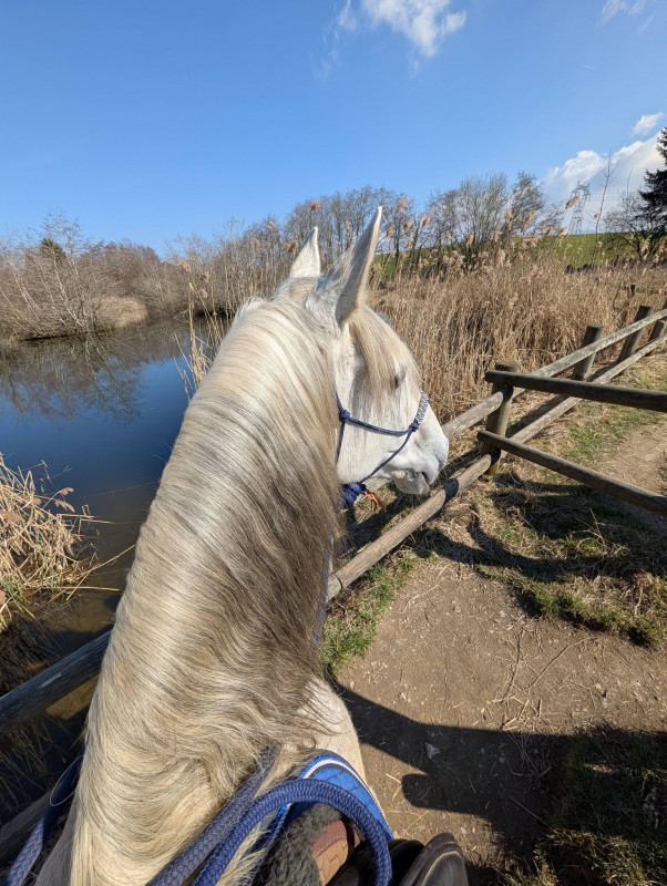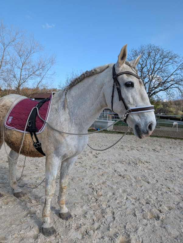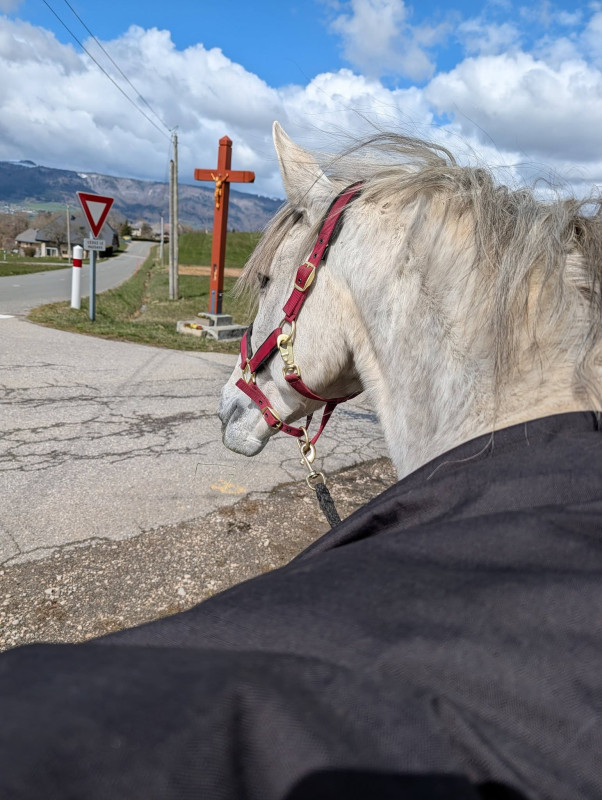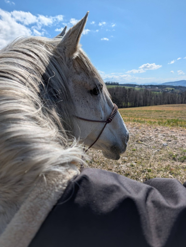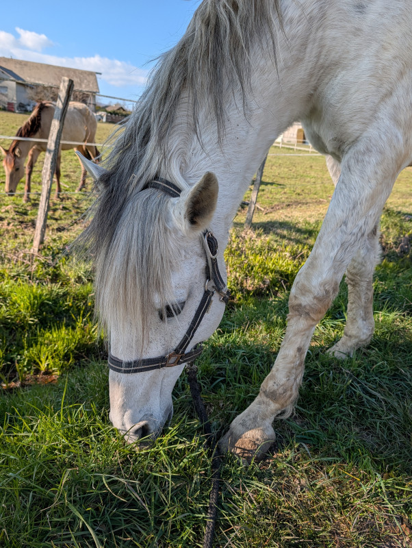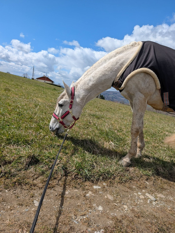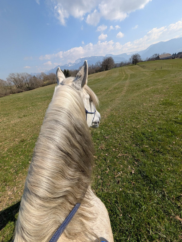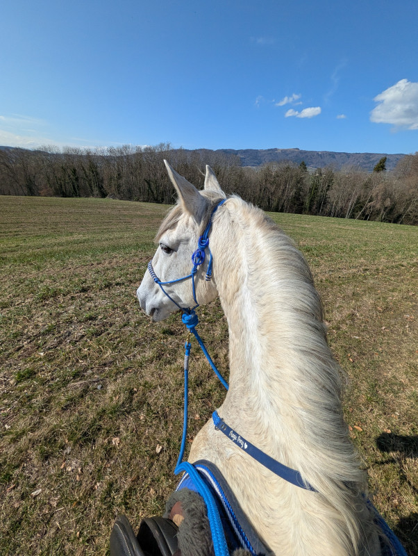 2015 je pars du club et je prends une DP sur une grande ponette pour CSO. Après notre premier concours, jument boiteuse, verdict arthrose, elle ne pourra plus jamais sauter. Bon, des mois de réeducation, je retrouve les plaisirs de monter à cheval juste pour le plaisir, pas pour la compet, et surtout loin des barres.