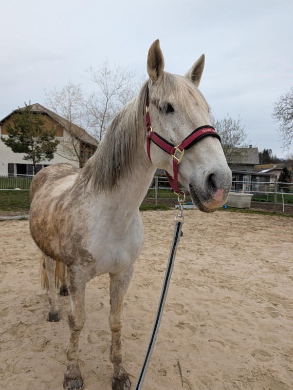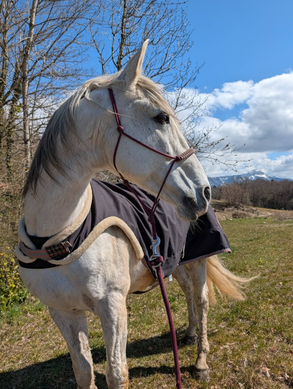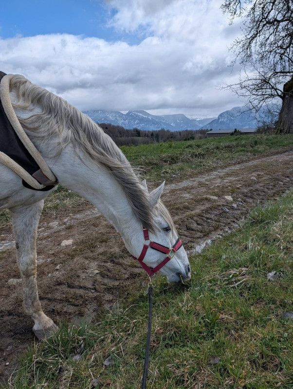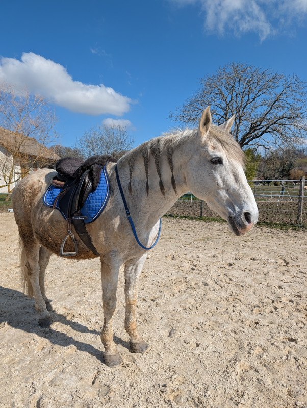 Il est en pension chez sa propriétaire qui est en train de construire une petite écurie de proprio ! Pour le moment pas de carrière sur place mais plusieurs solutions pour monter :