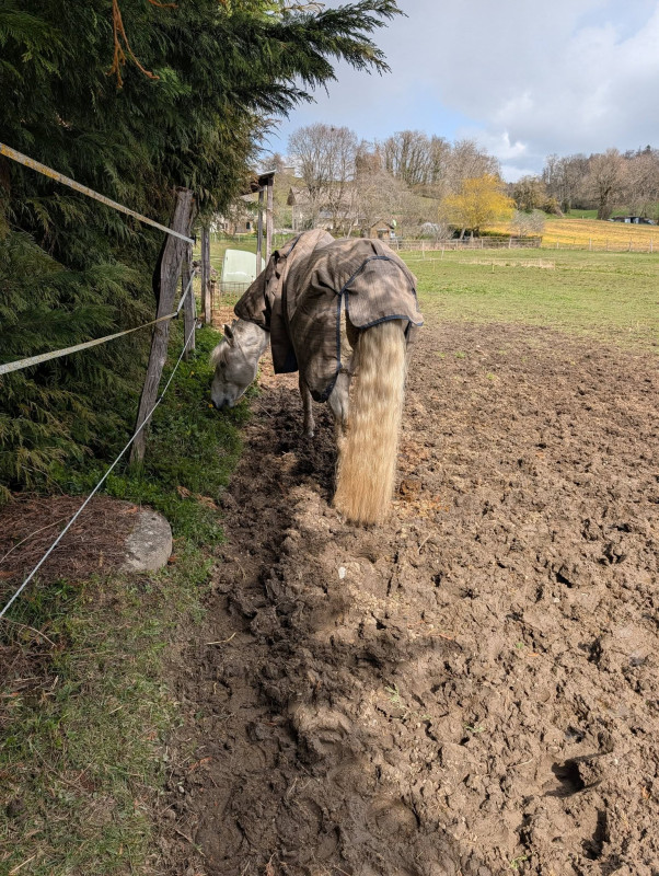Après ça, la couette et au pré, bon il est resté à la clôture mais bon ...