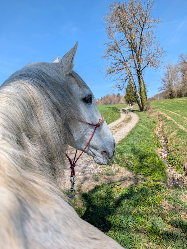 Après je pense que ça viendra car les 2 dernières séances (une fois en manège et une fois en balade) il a été sage malgré la présence de l'autre loulou !