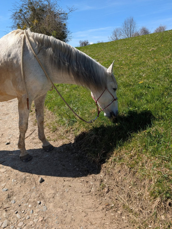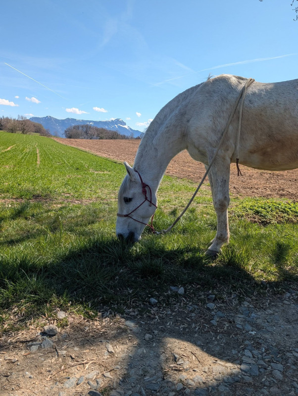 Il est en pension chez sa propriétaire qui est en train de construire une petite écurie de proprio ! Pour le moment pas de carrière sur place mais plusieurs solutions pour monter :