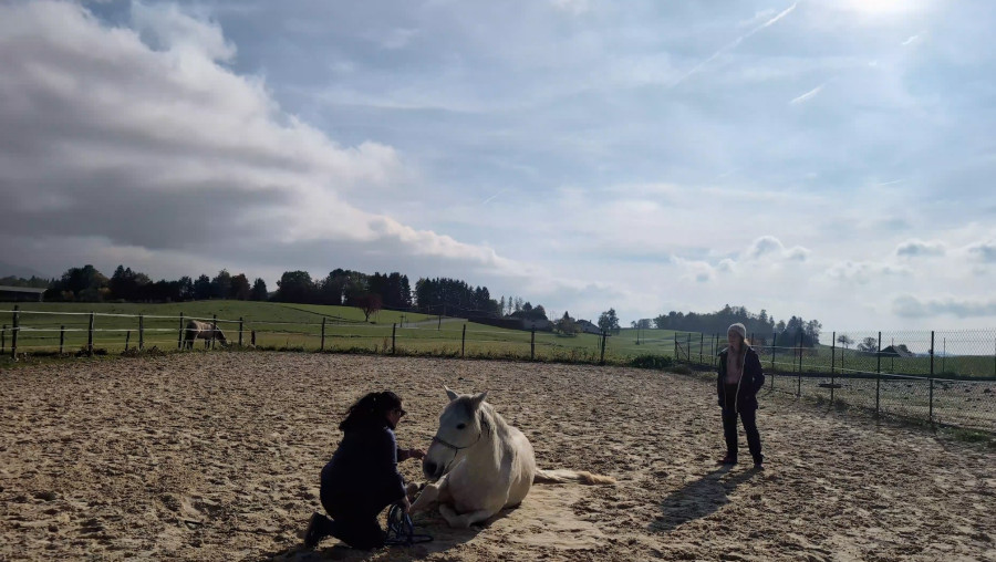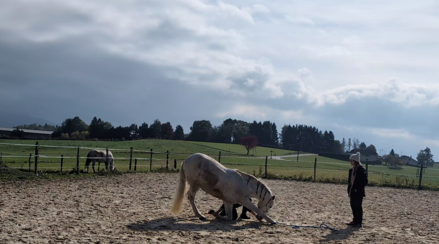 Jument très sensible qui a beaucoup de mal à faire confiance, se décontracter et se laisser aller !