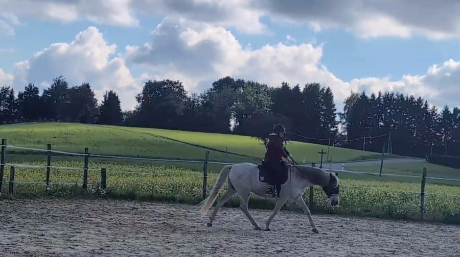 On commence au pas sur une volte a juste chercher l'extension sans trop bidouiller avec les mains, des très jolies choses