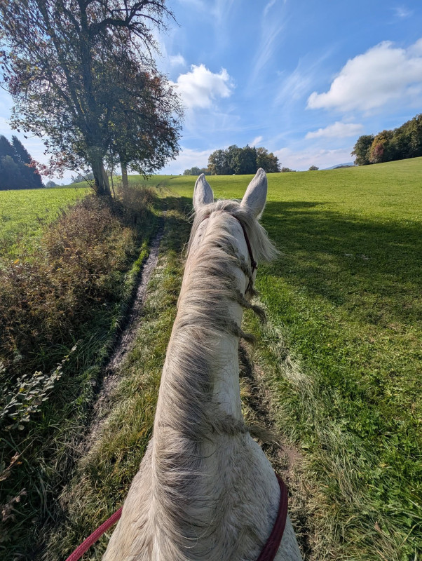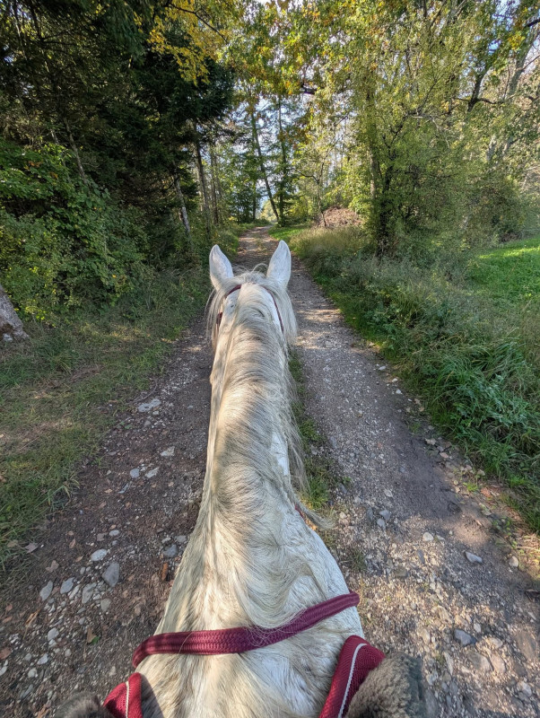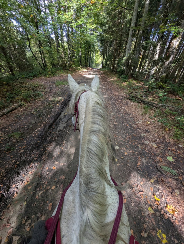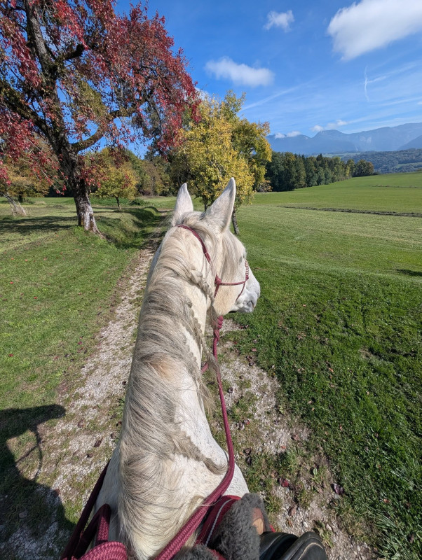 2015 je pars du club et je prends une DP sur une grande ponette pour CSO. Après notre premier concours, jument boiteuse, verdict arthrose, elle ne pourra plus jamais sauter. Bon, des mois de réeducation, je retrouve les plaisirs de monter à cheval juste pour le plaisir, pas pour la compet, et surtout loin des barres.