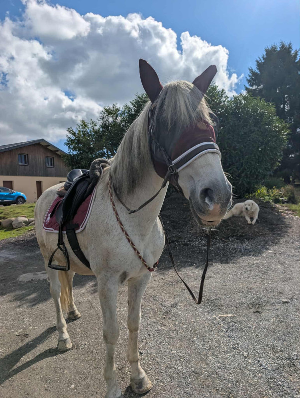 Il est en pension chez sa propriétaire qui est en train de construire une petite écurie de proprio ! Pour le moment pas de carrière sur place mais plusieurs solutions pour monter :