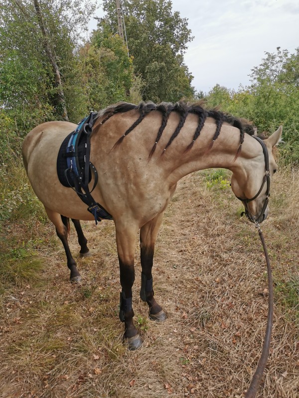 Je sais que vous regardez les photos et que cela ne parle pas, mais elle a un tempérament extraordinaire, elle était très curieuse de ce que je lui mettais sur le dos. On a claqué et tapé les enrenement, aucune inquiétude.