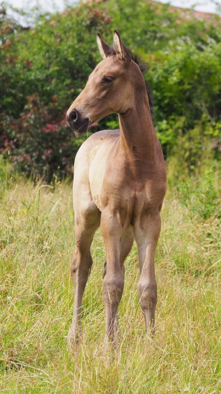 Petite présentation de ce superbe croisement : Heaven est une petite pouliche née le 23/04/2017, de robe Isabelle claire, d'une mère d'origine KWPN, Baccara, possédant comme arrière grand père Donnerwetter, et la pouliche à comme père le superbe étalon PRE Brujo PM. Certains d'entre vous m'ont envoyé des mails pour découvrir l'évolution de ce joli croisement qui pour le moment est très réussit et prometteur.