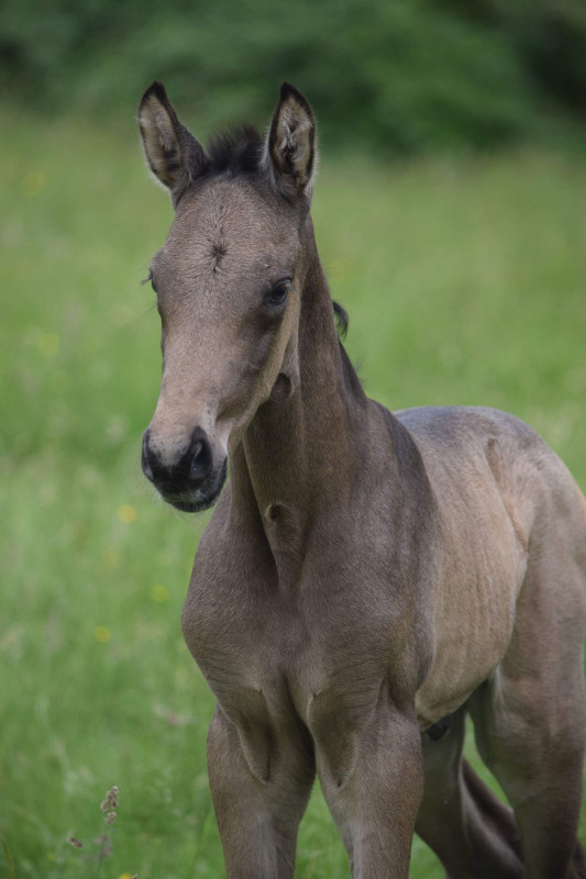 Le plus simple à juger pour le moment reste le caractère, elle est très douce et curieuse. Pour le reste mise à part la couleur isabelle, il n'est pas facile de pouvoir définir qui a apporter quoi. Mais elle semble avoir un modèle assez compact, avec une jolie tête plutôt espagnol, mais seul le temps nous le dira. Je vous laisse donc découvrir au fur et à mesure des photos et des vidéos cette petite merveille et ce croisement. J'espère qu'il vous séduira comme il m'a séduit