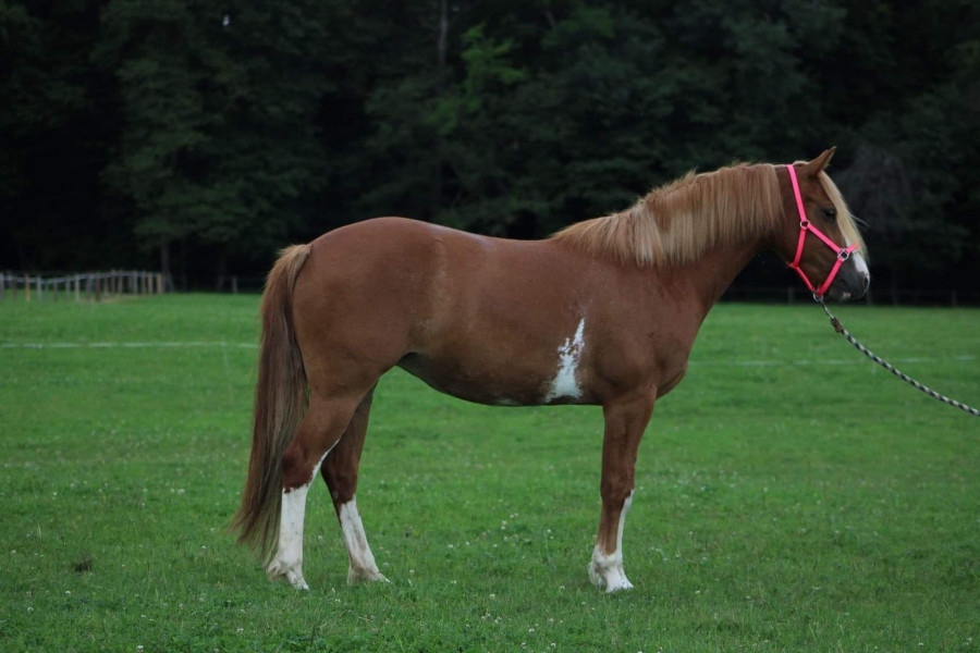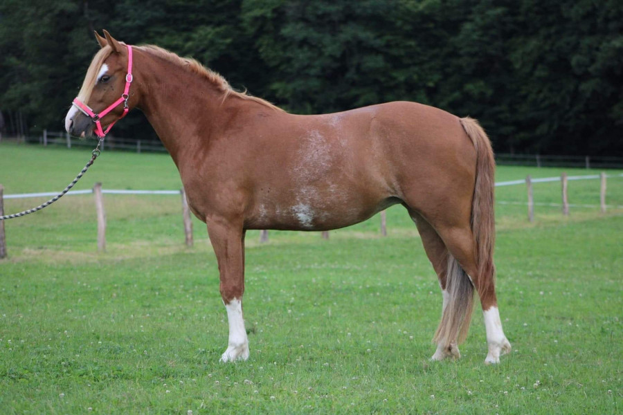 La mere, Quarter, a produit cette année une pouliche avec un père Shagya, alezan assez foncé et sans poils blancs, une pouliche qui elle est pour le coup franchement mélangée, pleine de poils blancs, et avec un gêne blanc également qui semble venir toujours du père, mais qui n'est pas testé, donc on ne sait pas ce que c'est, même si je penche pour du DW comme il y a bcp de sang arabe dans la lignée.