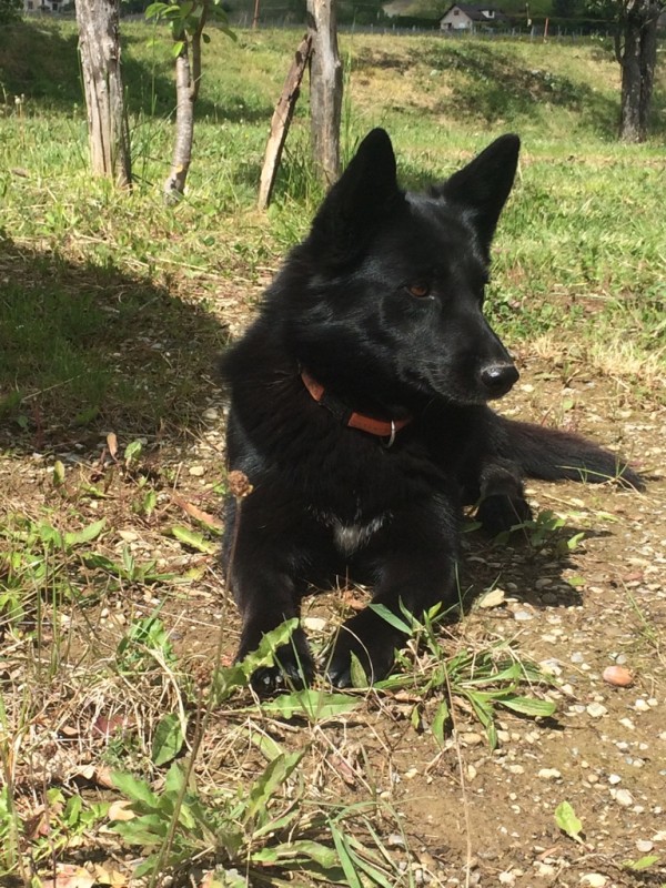 et Sa petite fille qui du coup est croiser border, berger allemand et husky . Rien ne ressort du husky sauf le poil! mais pas au niveau de la couleur, mais de la texture