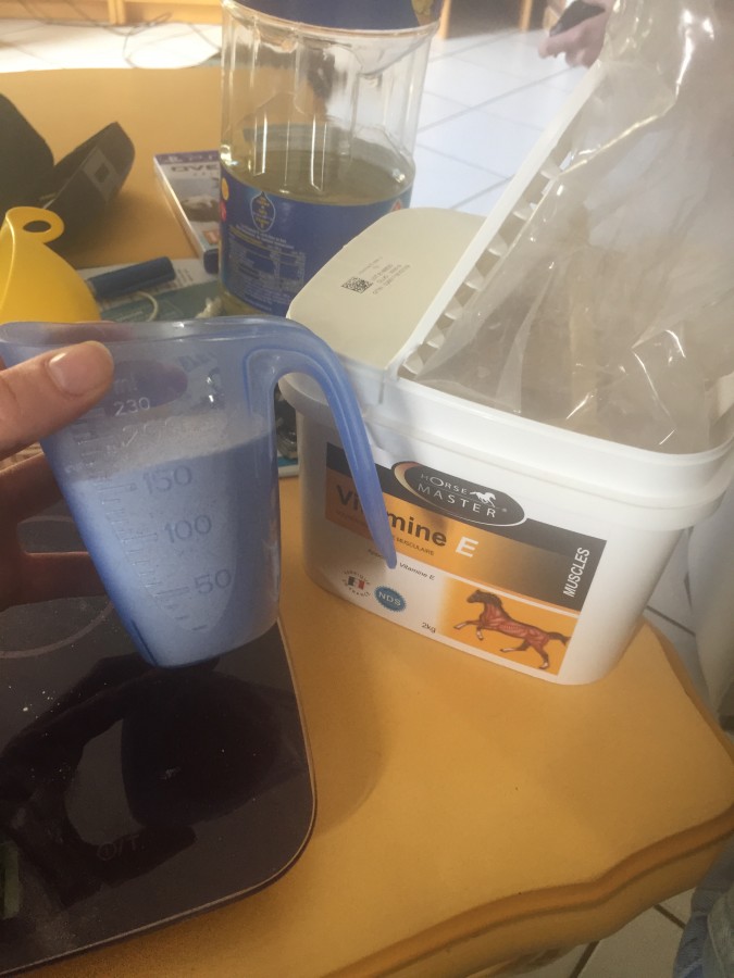 La cure de vitamine à donc commencé ce matin, je lui est donné dans un mash pour qu'il le mange plus facilement, et ça n'a pas l'air de le déranger.