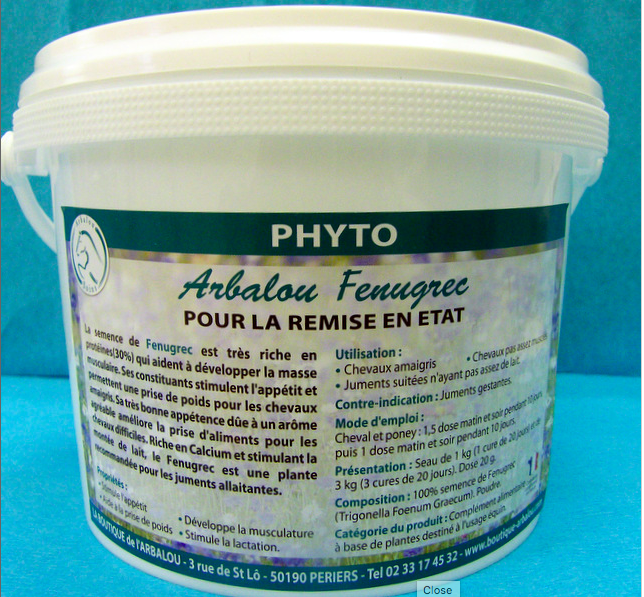 Nous avons terminer la cure de fénugrec Arbalou : de bons résultats, ont voit clairement que ça lui a fait du bien : les hanches se sont remplit, ainsi que les fesses. Je suis vraiment très contente de ce produit.