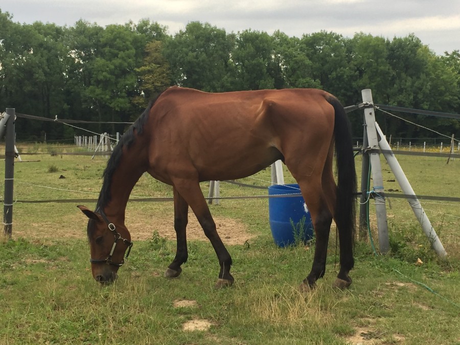 Karim a retrouvé son moral, il est en pâture avec le cheval d'une amie, la cohabitation se passe bien. Il finit ses rations, trot, galope, et reprend de la force. Mais crottins mous
