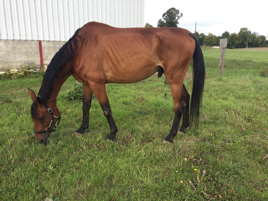 De net progrès comparé au mois dernier. La cure de chez Arbalou est terminé et a donné de bon résultat ; ont a remarqué une belle amélioration aux hanches et fesses : On voit clairement que ça s'est remplit. Le ventre aussi, les côtes commence a s'effacer vers la bas. De dos, on commence a voir le ventre dépasser. Mais ses crottins sont toujours mou.