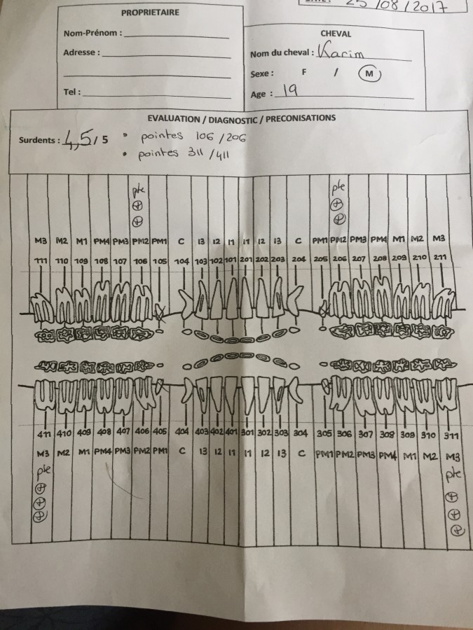 J'ai aussi appris que mon cheval avait sa mâchoire du haut plus avancé que celle du bas et que cela n'avait jamais été corrigé.