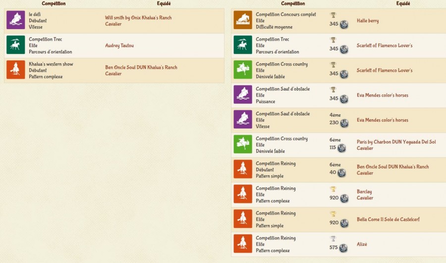 Equid'expérience, le concept m'intéressait aussi. Mais j'aime entrainer les chevaux le mieux possible avant tout et c'est ce qui m'a fait abandonner le jeu : j'avais un sublime étalon lusitanien red dun tovero crins lavés, un bijou ! ... Que j'ai massacré à l'entrainement car je n'ai jamais pu lui trouver un cavalier qui s'entende avec lui.