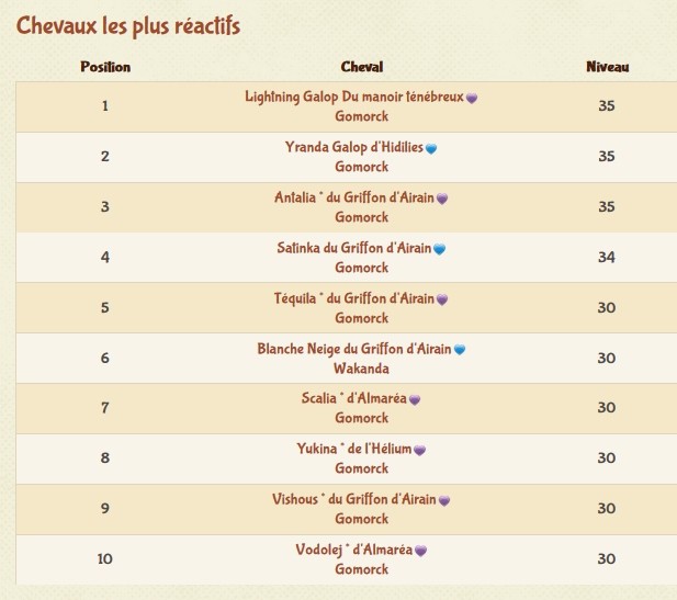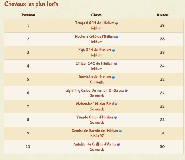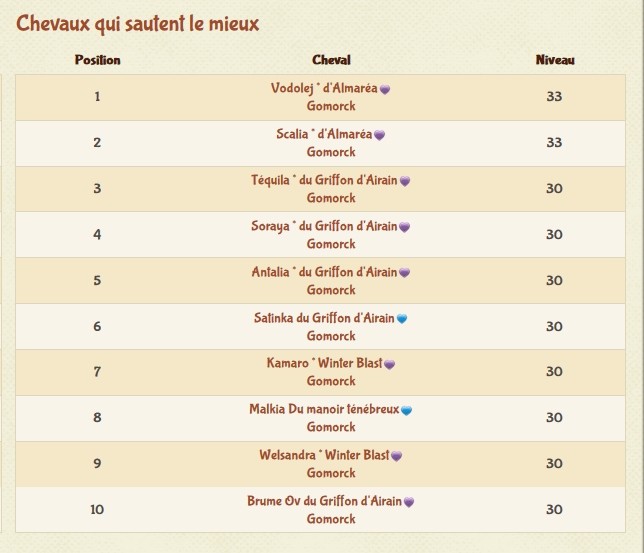 Chouette palmarès aussi celle là ! C'est dommage que les chevaux générés par le site ne soient pas certifiés. Elle et Numéria aurait été dans le classement de leur race, je pense.