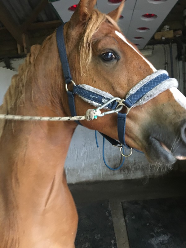 Attache à l'écurie = nickel (il était posé tête baissée pendant les 3/4 du temps, l'autre 1/4, je lui demandais de bouger ses hanches, d'avancer, de reculer, il était super calme et attentif)