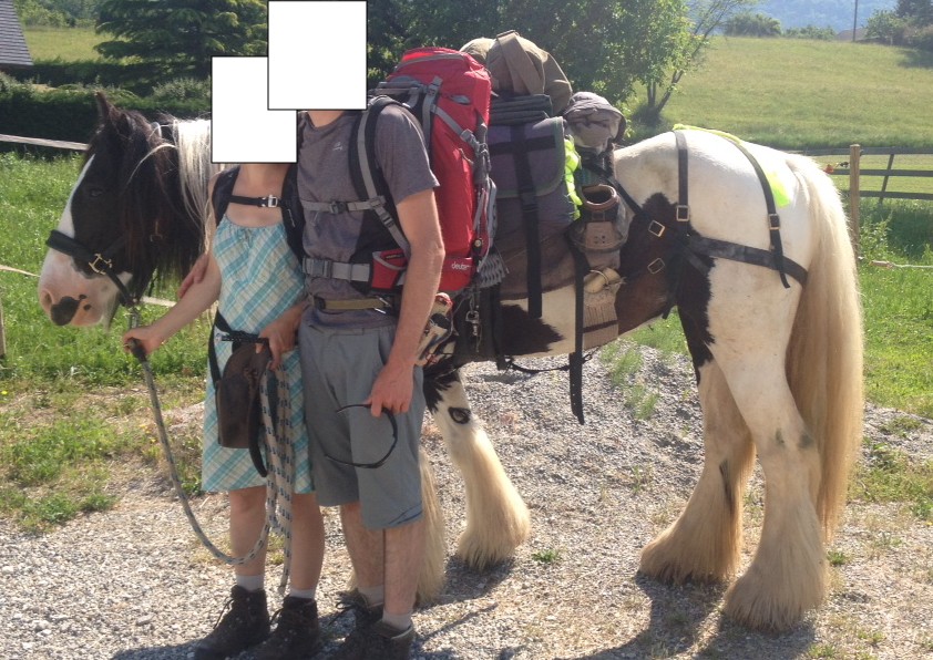 Ce cheval était dans mon village ce week-end ( en Savoie ) , une amie l'a acceuilli lui et ses deux propriétaires ! C'est un couple qui vient de bourgogne, ils font tout à pied en se servant du cheval pour porter les vivres et autres ! :)
