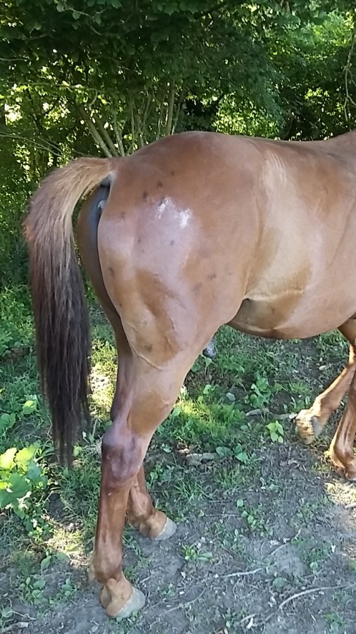 Mon étalon a une tache sur le dos qui ressemble à une selle (placée trop en avant, on est d'accord) :