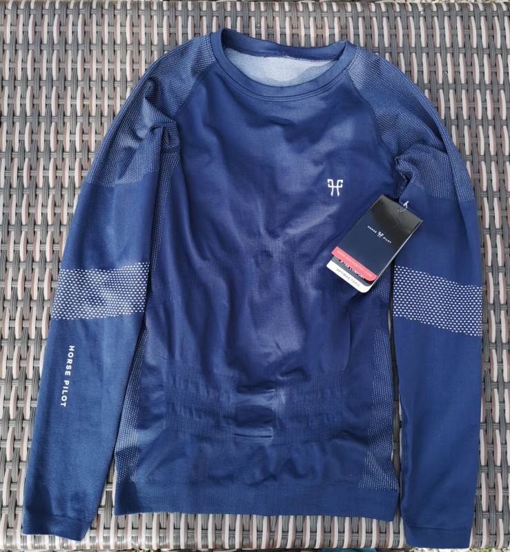 Je vends un polo de concours Horse Pilot à manches courtes bleu marine taille XS.