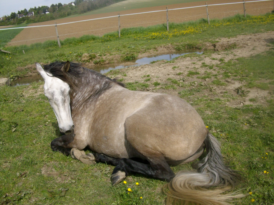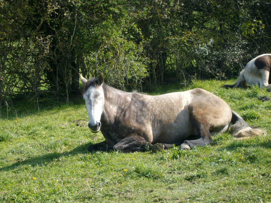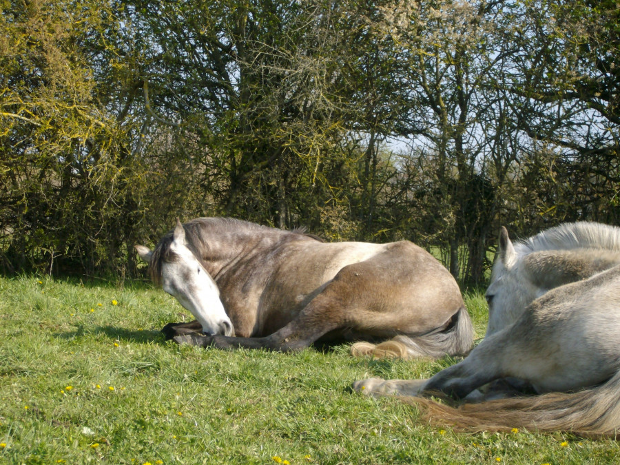J'avais un cours de dressage prévu, en arrivant tous les chevaux dormaient, vu que j'avais pas mal d'avance, je me suis assise à côté d'Esperado pendant un bon moment